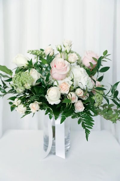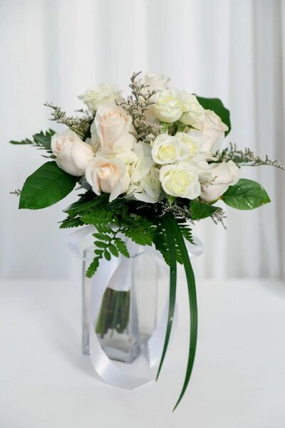 Our florist’s flower supply is impacted by weather and world conditions. She does her best to create the nicest florals as similar as possible to the reference photos. Florals may not be exactly as pictured.